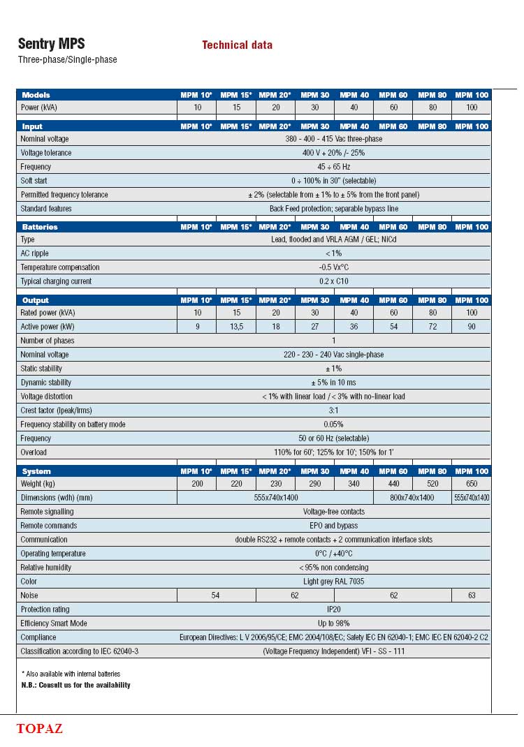 Sentry MPS 30-80KVA (Single Phase Output)